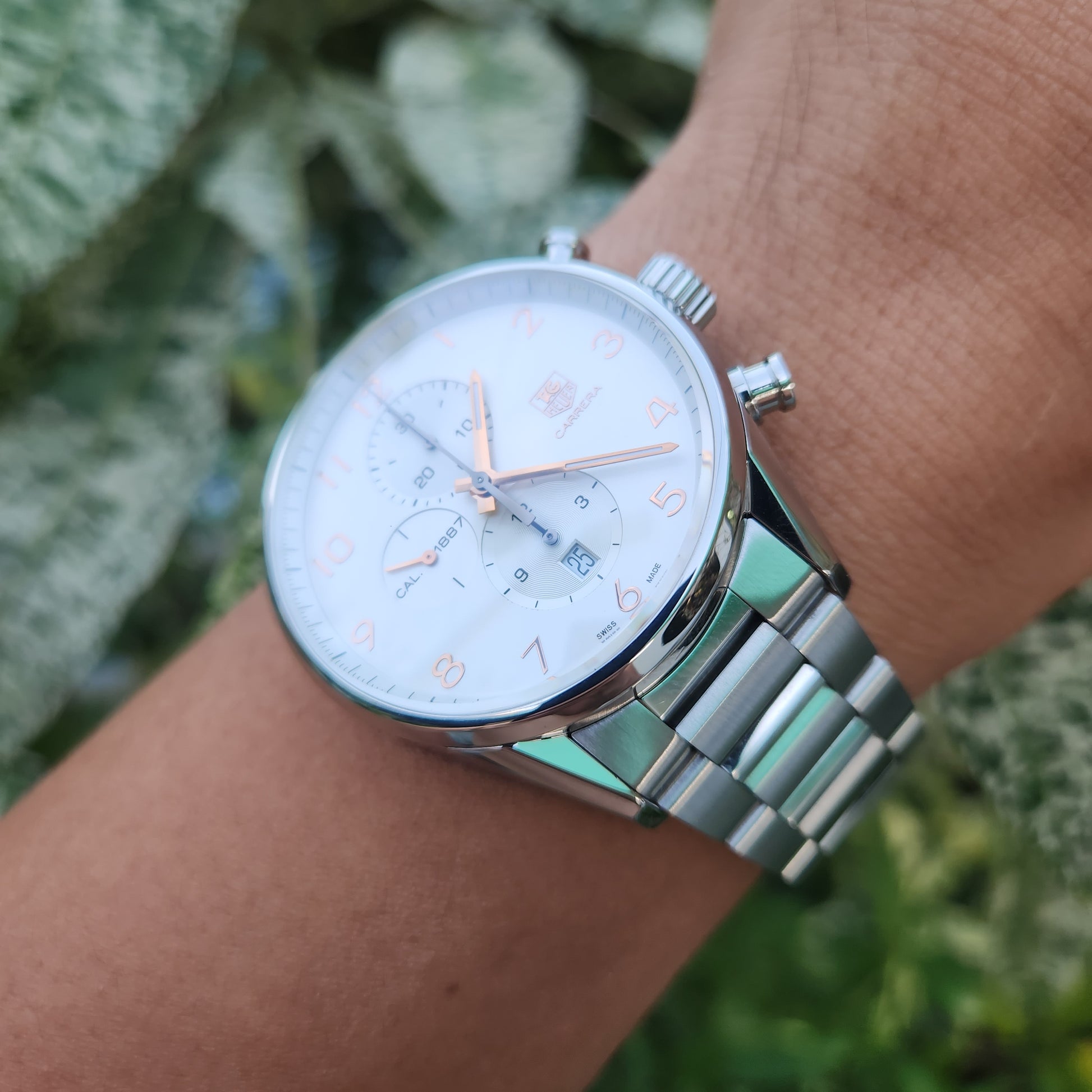 Tag Heuer Carrera Calibre 1887 Chronograph Rose Gold Indeces in White Dial 43mm